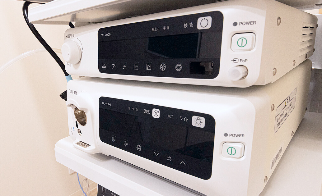 検査で使用する機器は、レーザー光源を搭載した次世代内視鏡システム『LASEREO 7000システム』を導入しております。分かりやすく見やすい高画質の画像で、微細な病変部なども素早く正確に確認することが可能です。検査時間の短縮になることで、患者様の負担減にもつながります。