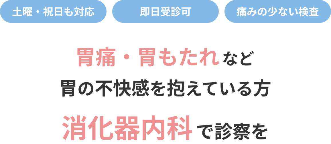 胃痛、胃もたれなど胃の不快感を抱えている方 消化器内科で診察を 土曜・祝日も対応/即日受診可/痛みの少ない検査