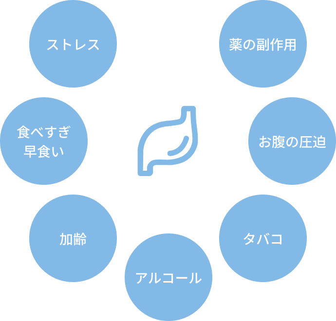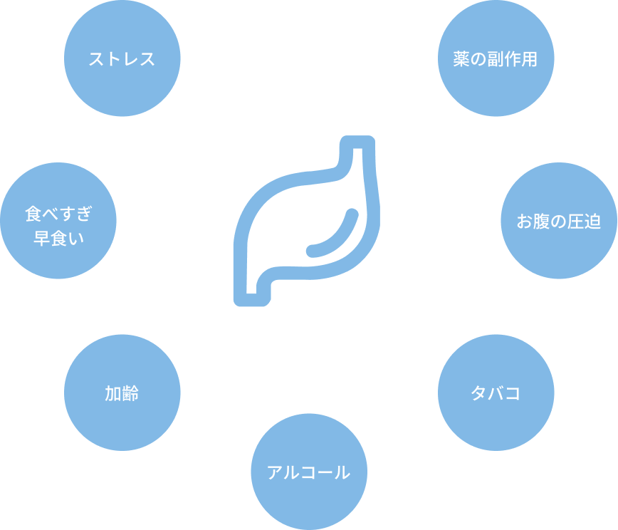 逆流性食道炎、胃潰瘍、十二指腸潰瘍、機能性ディスペプシア、胃がんだけでなく、食道がんや胃粘膜下腫瘍などの他の病気が隠れていないことも確認します。