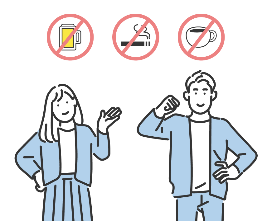 タバコやアルコールは、逆流性食道炎の要因となりえるため控えましょう。カフェインは胃酸分泌を促進するため、症状を和らげたい場合にはコーヒーや緑茶は減らしてみてください。