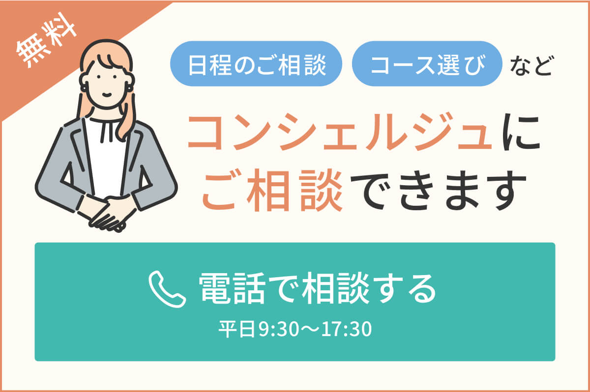 日程やコース選びでお悩みの方はお電話でご相談いただくことも可能です。
