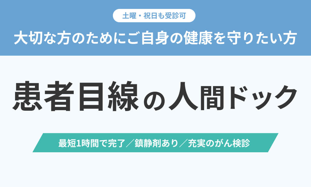 患者目線の人間ドック:大切な方のためにご自身の健康を守りたい方 土曜・祝日も受診可 最短1時間で完了/鎮静剤あり/充実のがん検診