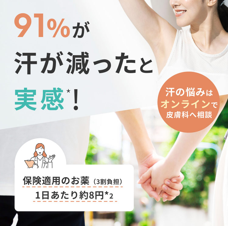 ※2024年5月実施:当院の多汗症オンライン診療を受診された患者様へのアンケートで、お薬の使用で効果を感じた217名の患者様の回答より