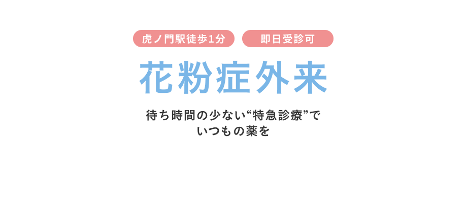 虎ノ門駅徒歩1分 即日受診可 花粉症外来 待ち時間の少ない“特急診療”でいつもの薬を