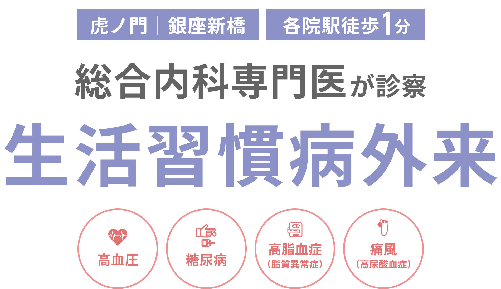 尿酸値が高いまま放置すると、耐え難いほどの痛みの痛風発作を起こしたり、動脈硬化が進行したりします。健康診断で尿酸値を指摘された方、痛風でお困りの方は、当院にご相談ください。